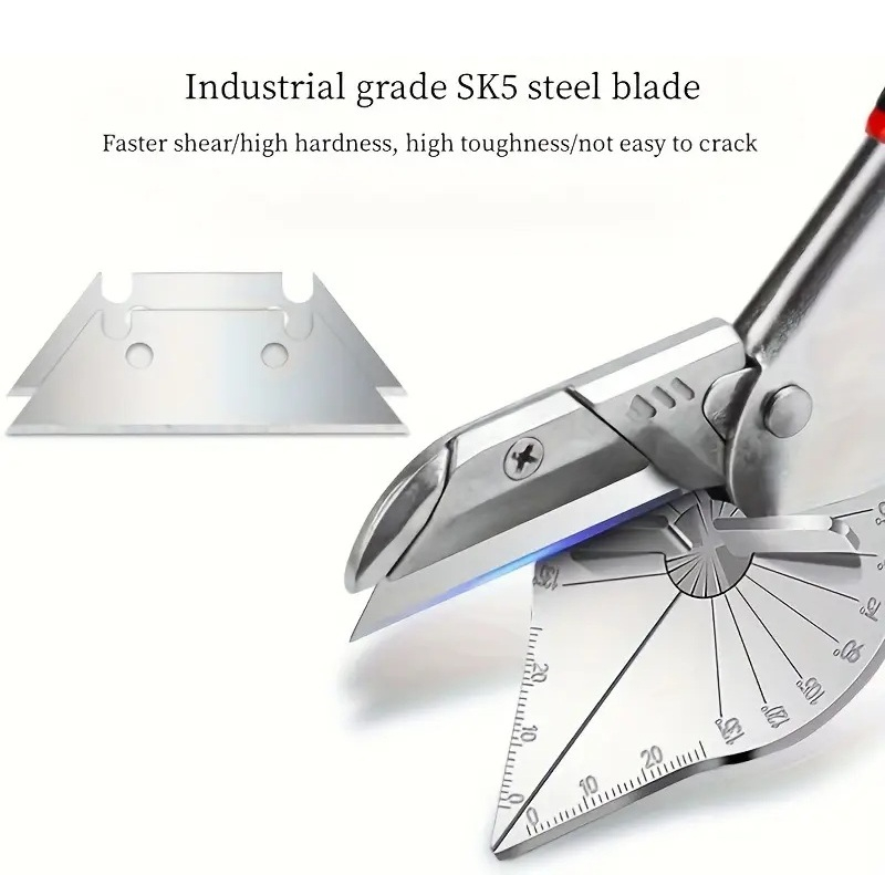 Foarfeca din otel cu unghi reglabil 45°-135° – Cutter multifunctional pentru plinte, PVC, lemn moale, profile decorative + 2 lame de rezerva, Luxer