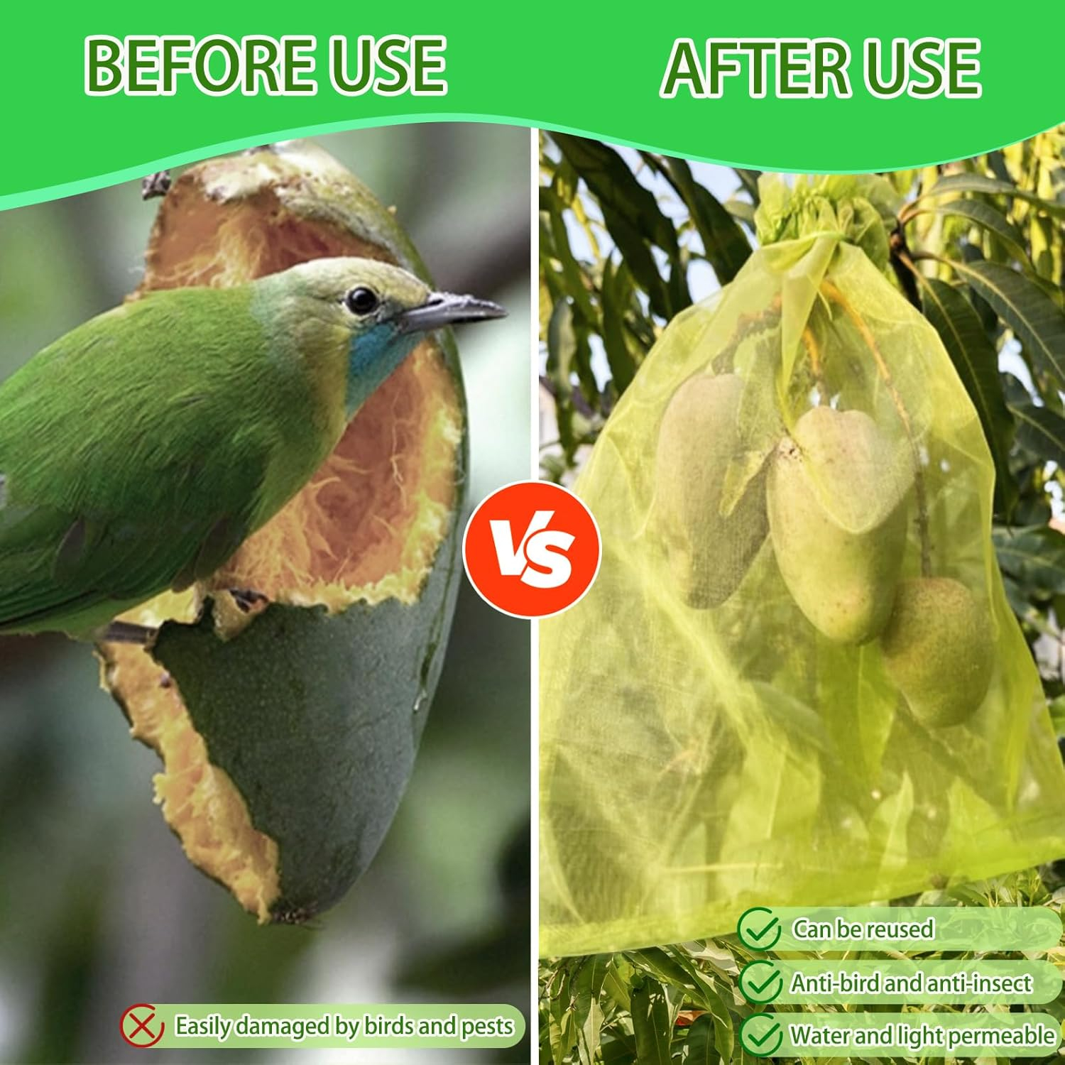 Protejeaza-ti fructele si legumele din gradina cu setul de 20 de pungi de protectie realizate din plasa fina, durabila si respirabila. Ideal pentru pomi fructiferi, vita de vie, legume, ardei, rosii, capsuni si alte plante vulnerabile, aceste pungi formeaza un scut eficient impotriva daunatorilor: insecte, pasari, viespi, molii, lacuste sau rozatoare mici.