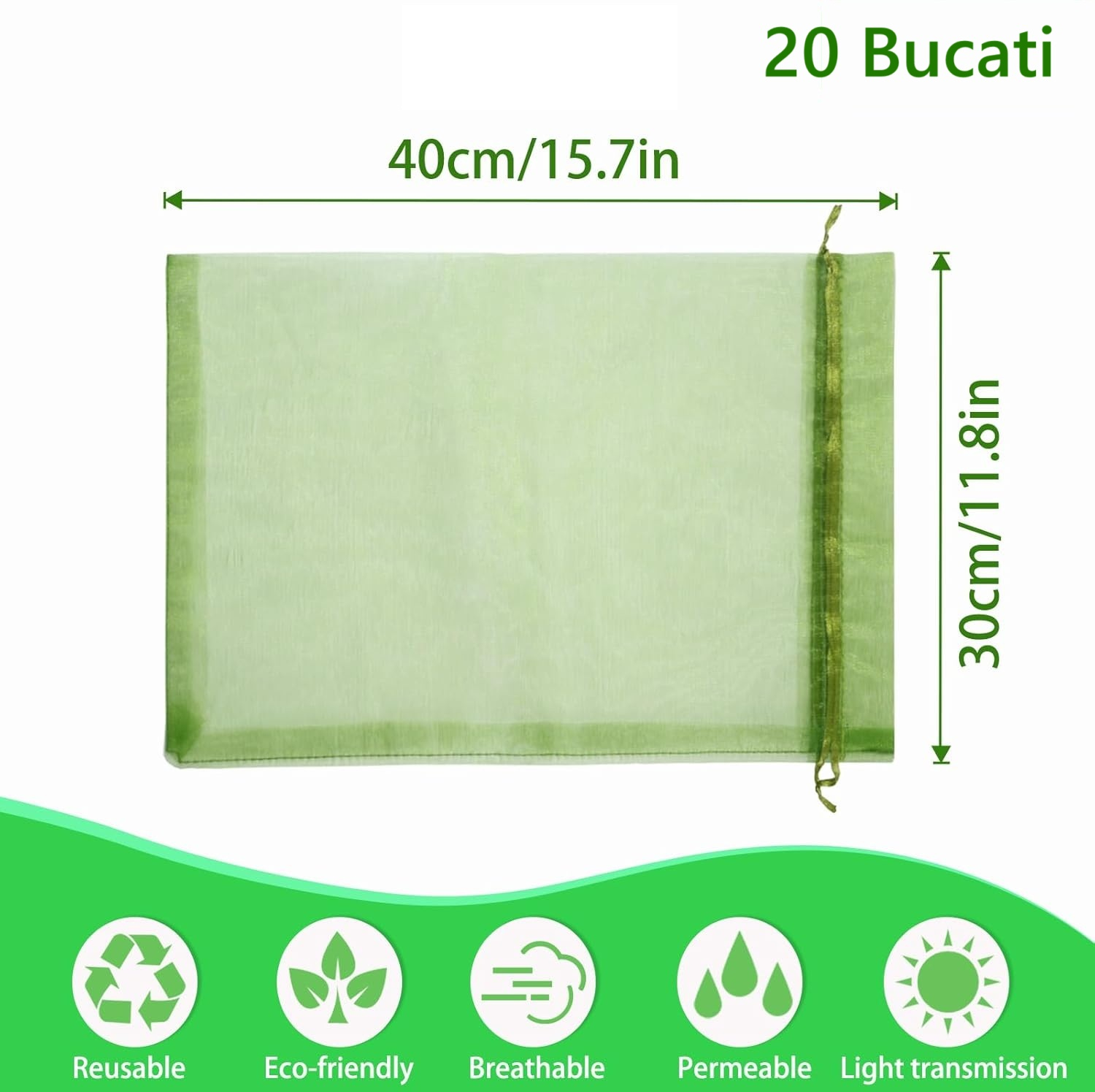 Set 20 Pungi de Protectie Pentru Fructe si Legume Cu Snur, Anti-Insecte, Pasari si Rozatoare, Dimensiuni 30x40 cm