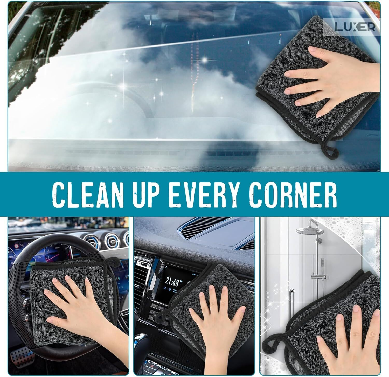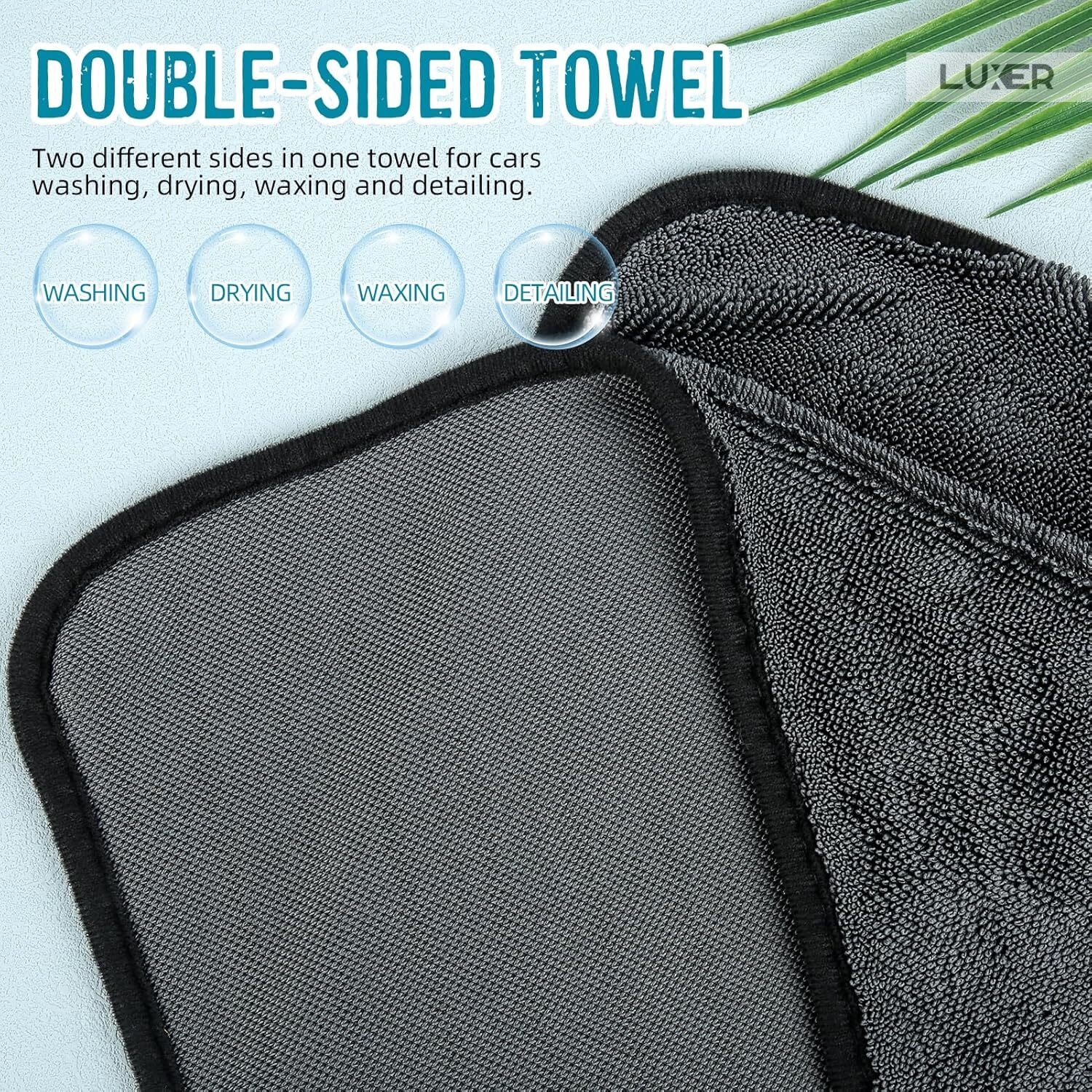 Îngrijește-ți mașina cu prosopul din microfibră Luxer 4 în 1, cu 2 fețe pentru spălare, uscare, ceruire și detailing.