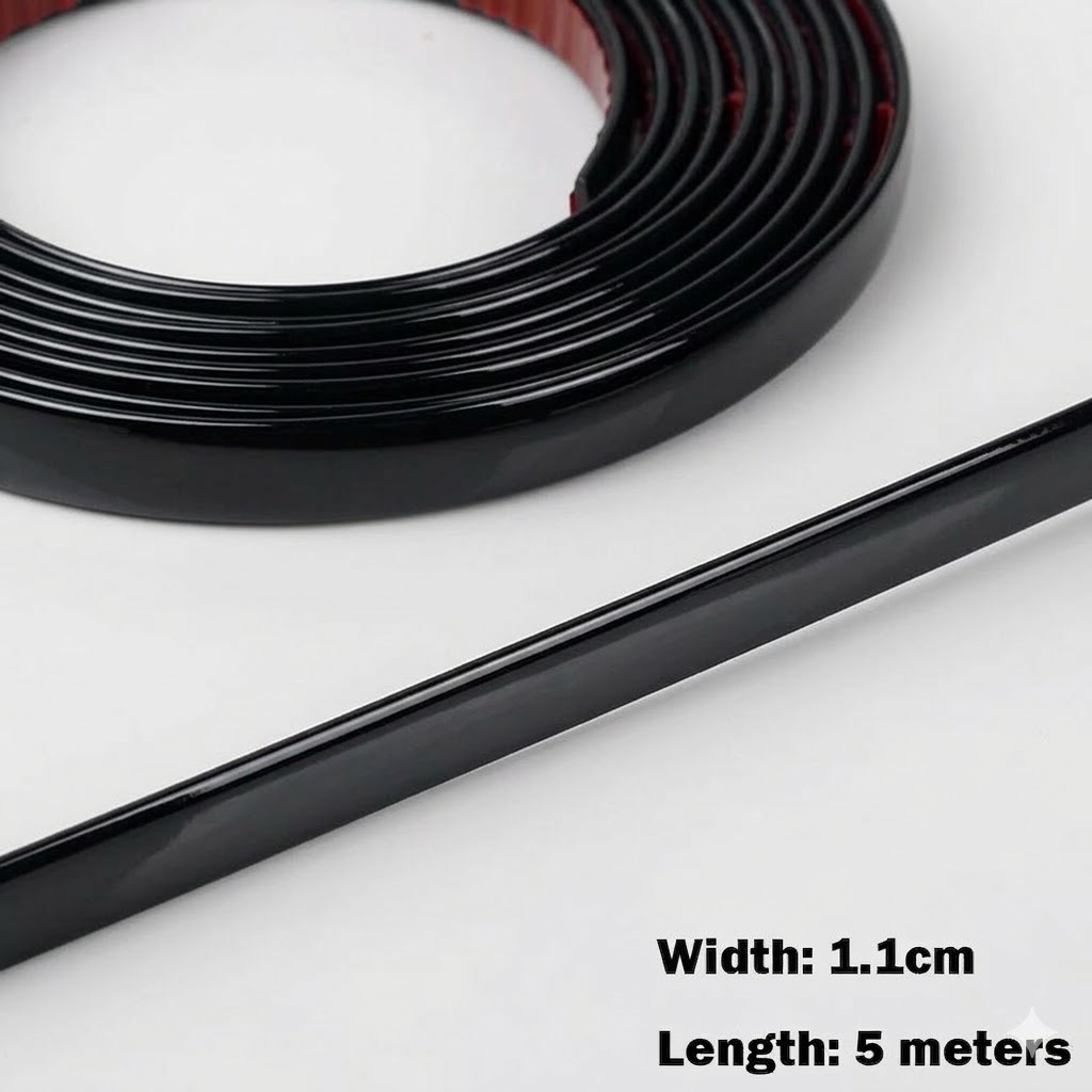 • Design versatil: Cu o latime de 1.1 cm si o lungime generoasa de 5 metri, banda decorativa se potriveste perfect pentru o varietate de suprafete: pereti, dulapuri, usi, mobilier, dar si pentru decorarea elementelor auto.