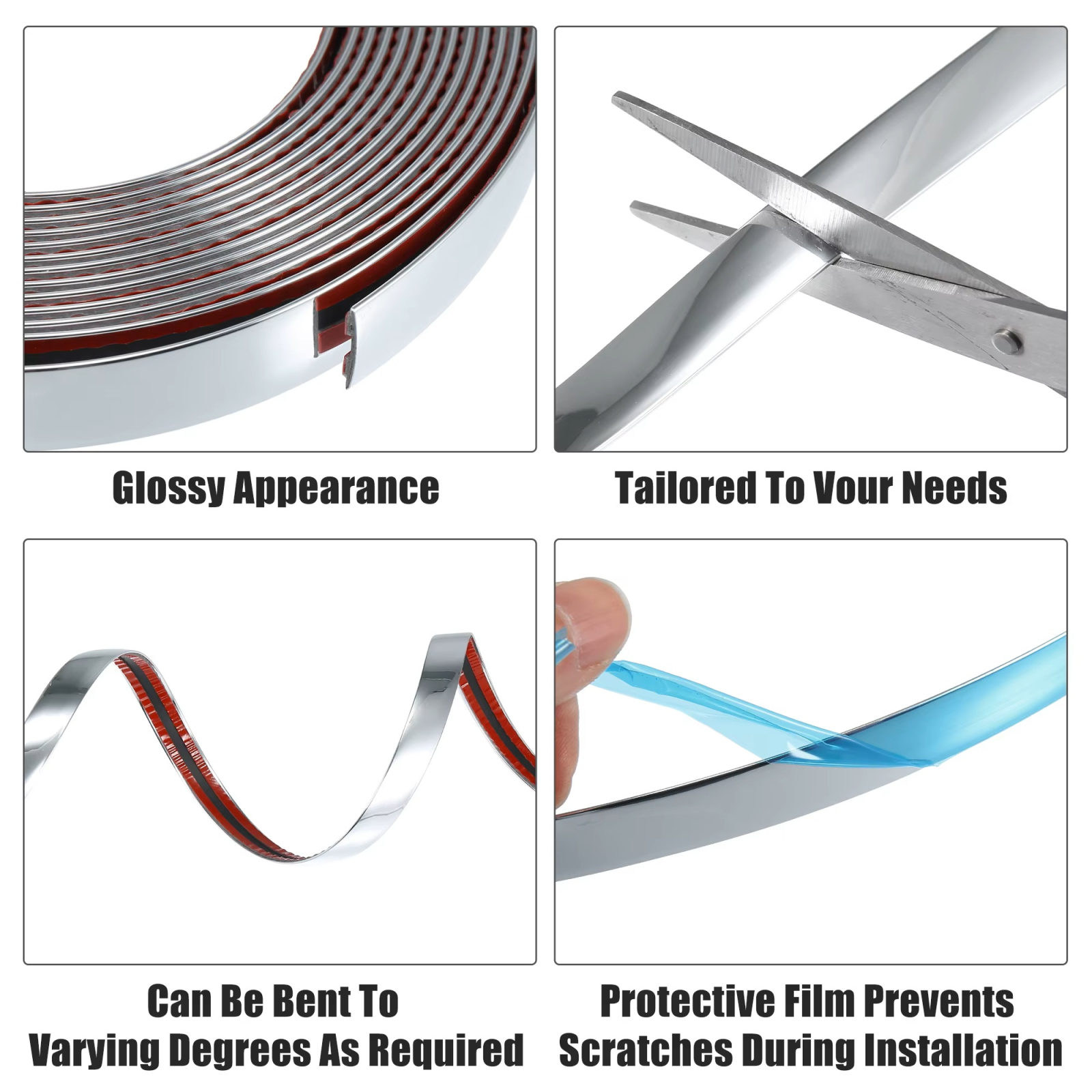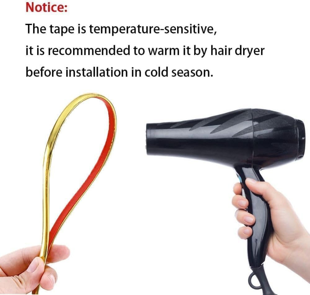 • Design versatil: Cu o latime de 1.1 cm si o lungime generoasa de 5 metri, banda decorativa se potriveste perfect pentru o varietate de suprafete: pereti, dulapuri, usi, mobilier, dar si pentru decorarea elementelor auto.