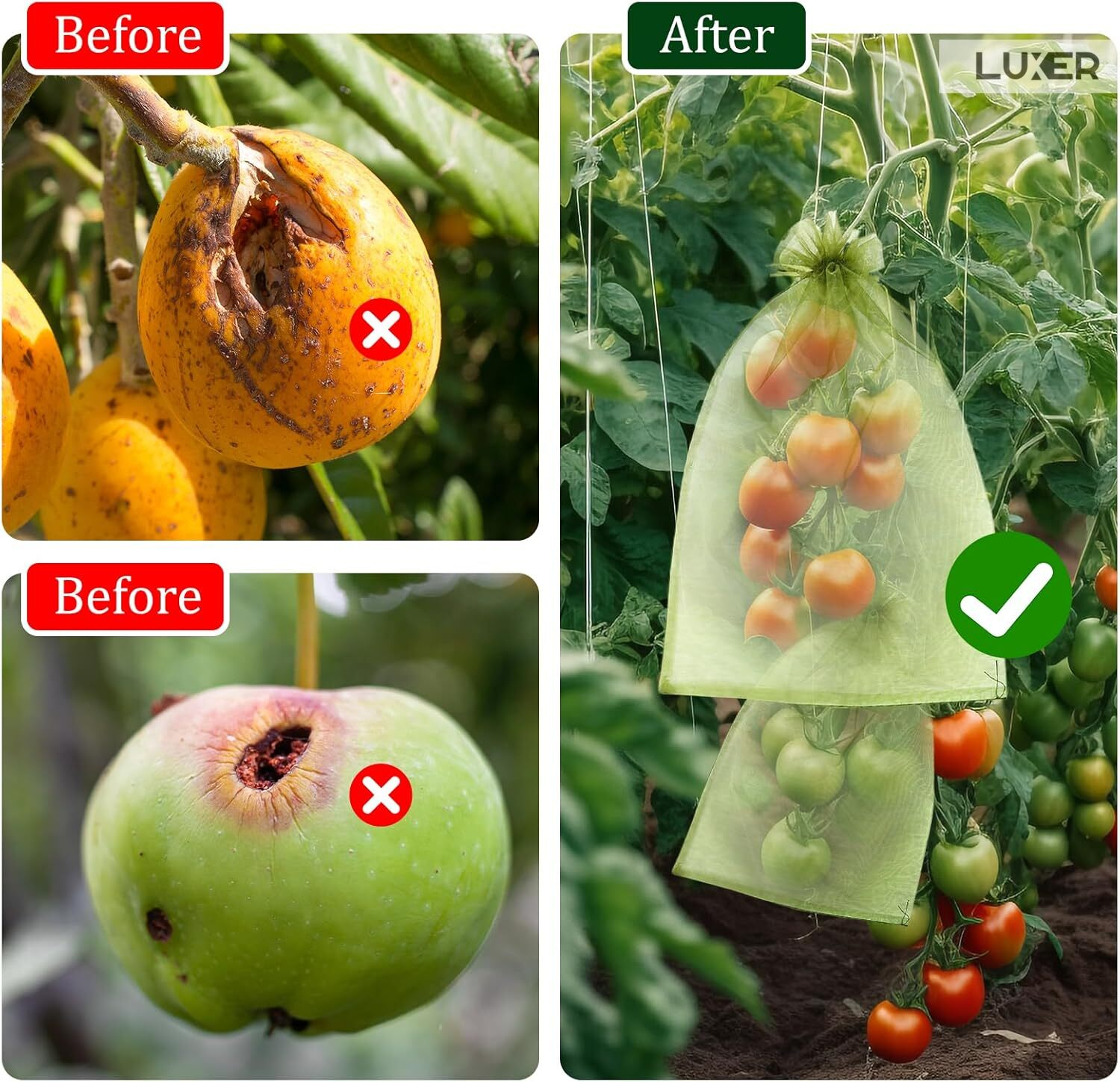 Protejează-ți fructele și legumele cu setul de 20 pungi Luxer, anti-insecte, păsări și rozătoare.