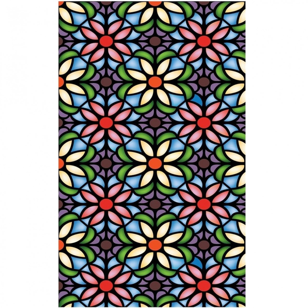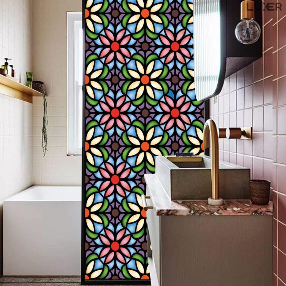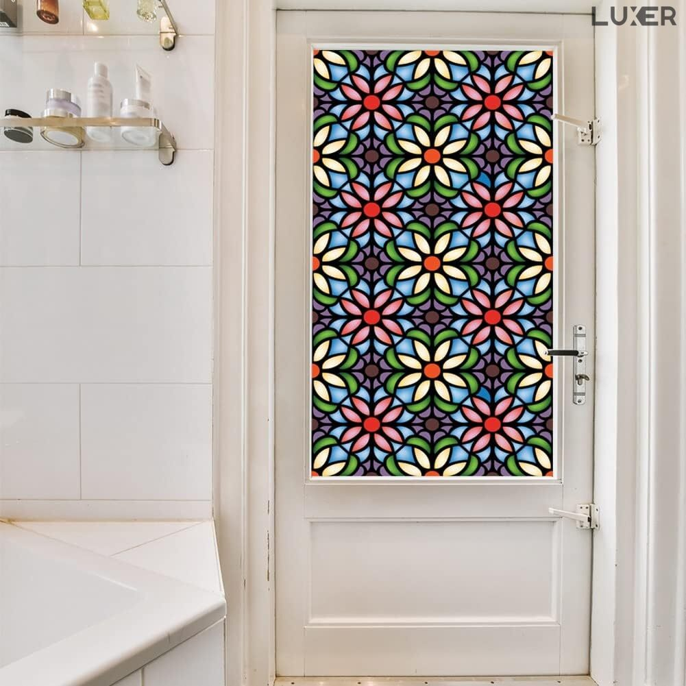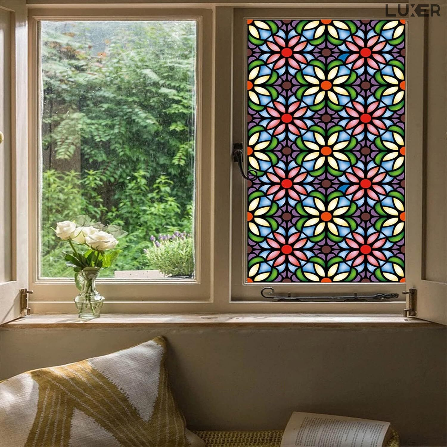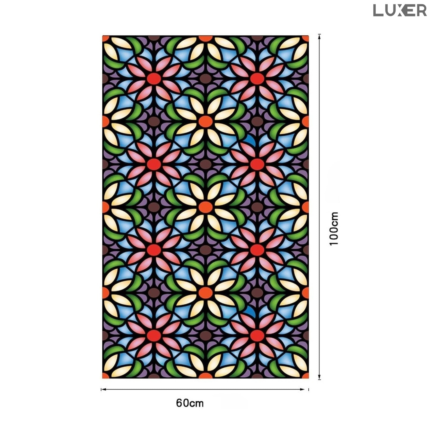 Folie Autoadeziva pentru Geamuri, Protectie Solara si Intimitate, Efect de Vitraliu, Model Floral, 100 cm x 60 cm, Luxer