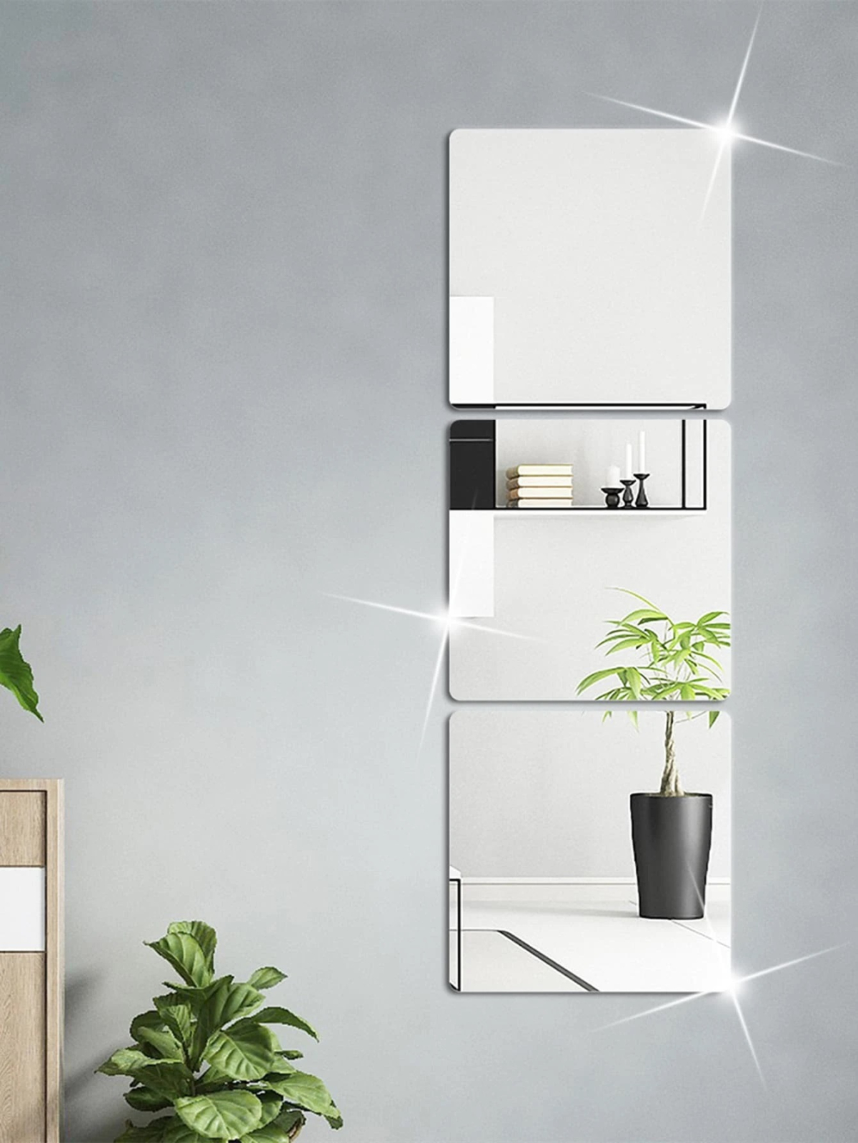 Setul de 3 oglinzi acrilice de 15 x 15 cm de la Luxer este alegerea ideală pentru proiectele rapide de amenajare. Simplitatea formei pătrate îți oferă libertatea de a crea benzi reflectorizante verticale, orizontale sau de a le folosi individual ca accente practice în locurile unde ai nevoie de o verificare rapidă a look-ului.