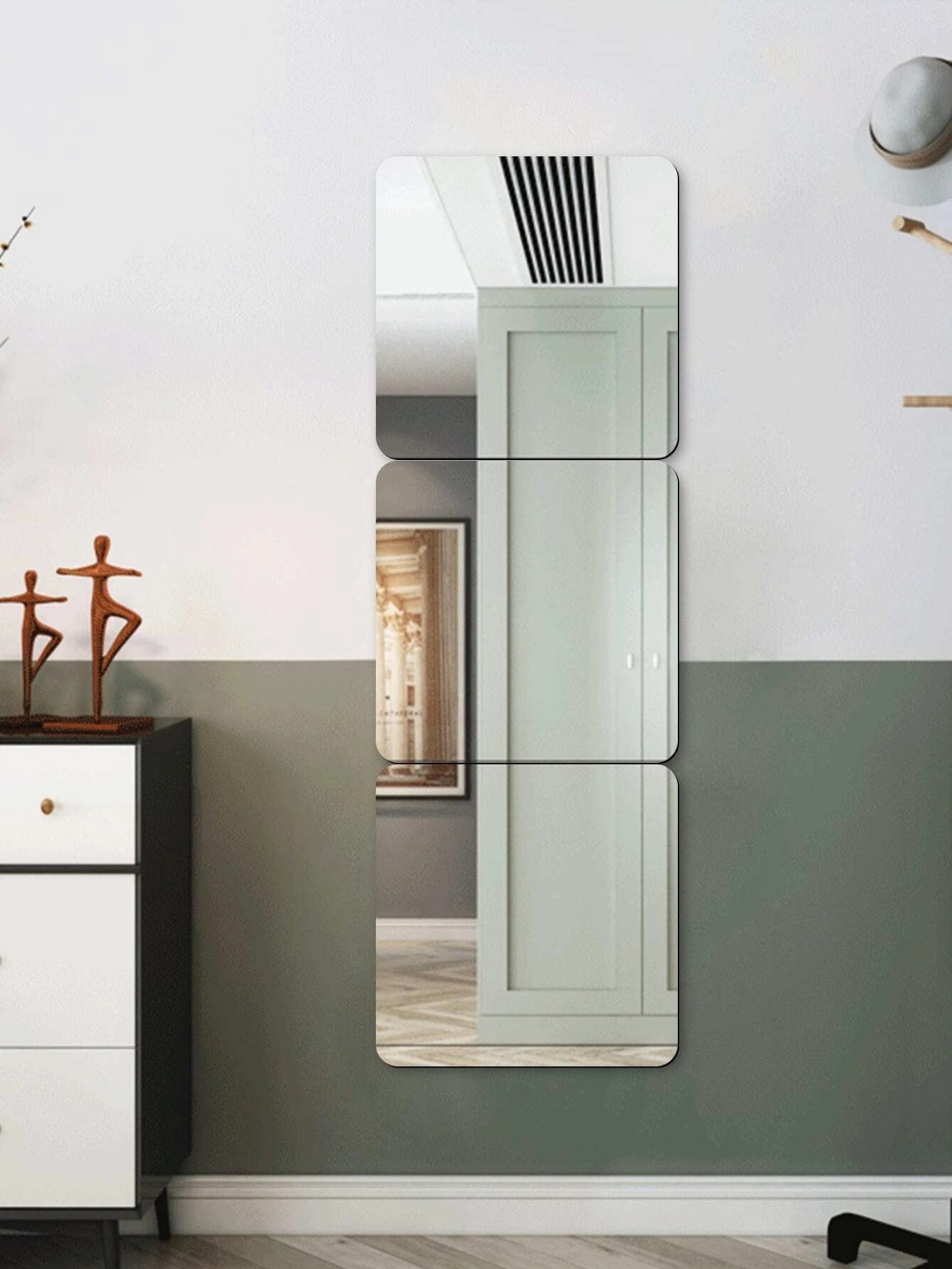 • Transformare Instantanee a Mobilierului: Ai un dulap vechi sau o ușă de dressing care pare plictisitoare? Aplicarea acestor oglinzi le oferă un aspect modern și ajută la „dispariția” vizuală a pieselor mari de mobilier, reflectând restul camerei.