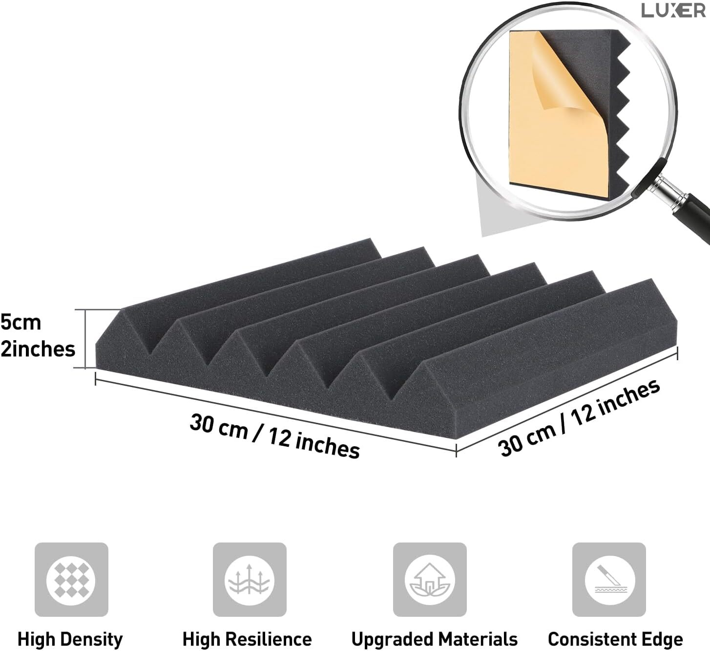 Setul de 12 panouri fonoabsorbante Luxer (IBS0489) este soluția ideală pentru îmbunătățirea calității sunetului și reducerea ecoului în orice încăpere. Fabricate din burete poliuretanic de înaltă densitate, cu tratament ignifug, aceste panouri autoadezive sunt perfecte pentru studiouri de înregistrări, birouri, săli de gaming sau home cinema.