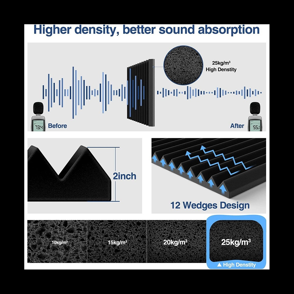 Performanță Acustică Excelentă: Grosimea de 2.5 cm și structura densă sunt optimizate pentru a absorbi frecvențele medii și înalte, eliminând reflexiile sunetului de pe pereții duri. Rezultatul? Înregistrări vocale mai clare și o experiență de audiție mult mai fidelă.