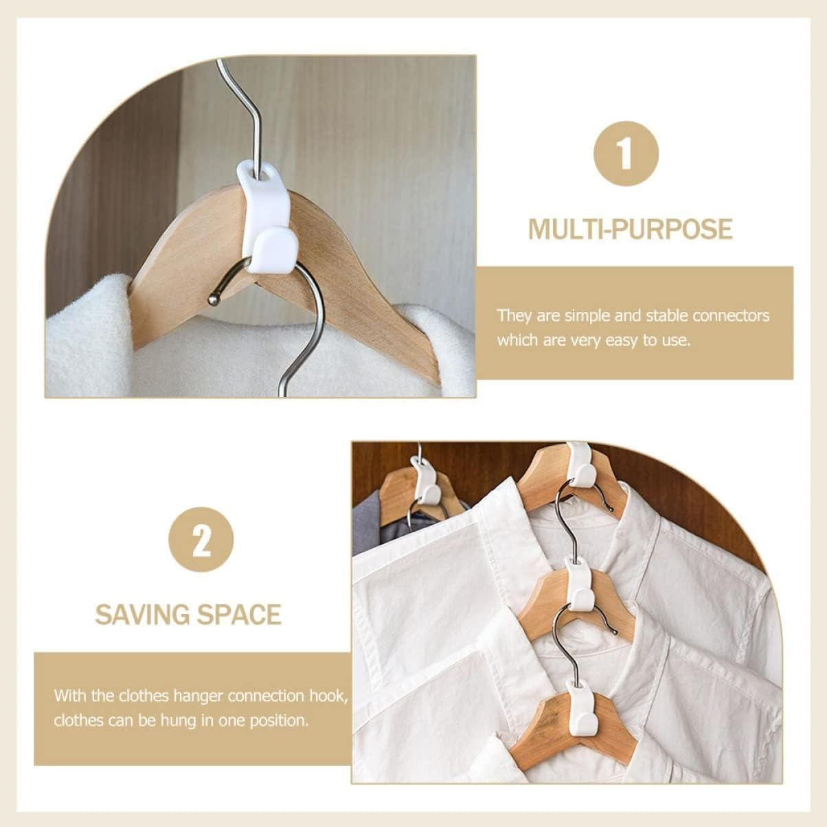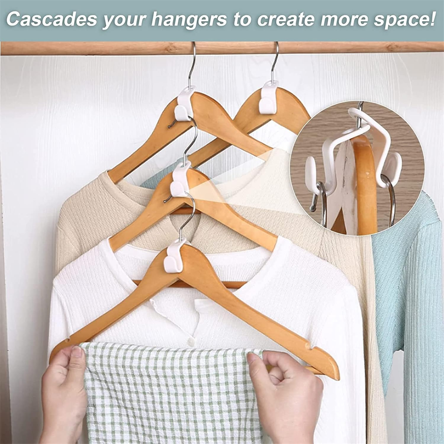 Utilizare: Introduceți cârligul peste gâtul umerașului principal înainte de a agăța al doilea umeraș în fanta inferioară.