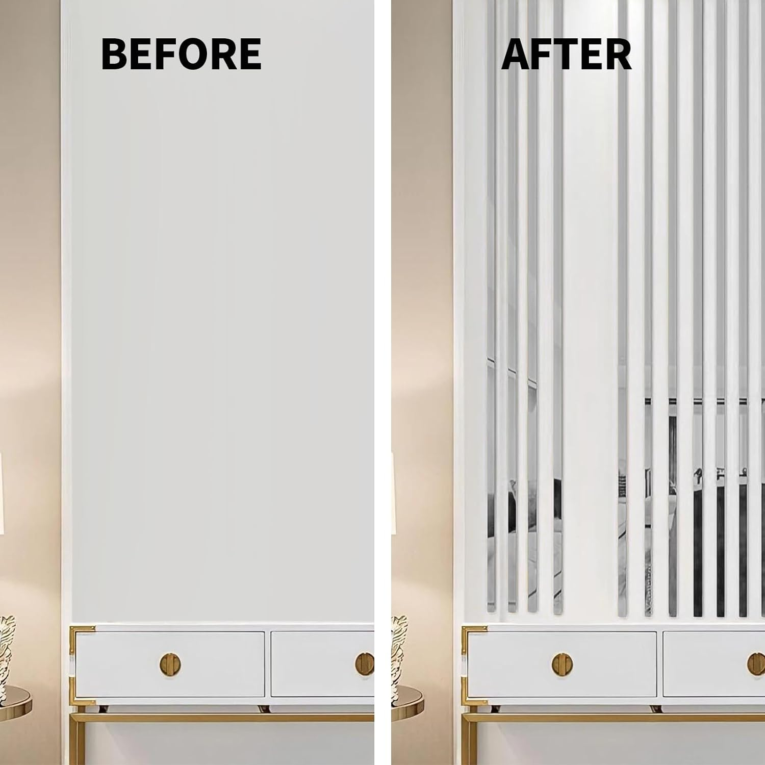 Set 36 Oglinzi Acrilice Autoadezive Luxer, Model Liniar, Dimensiuni 35x8 cm, Silver
