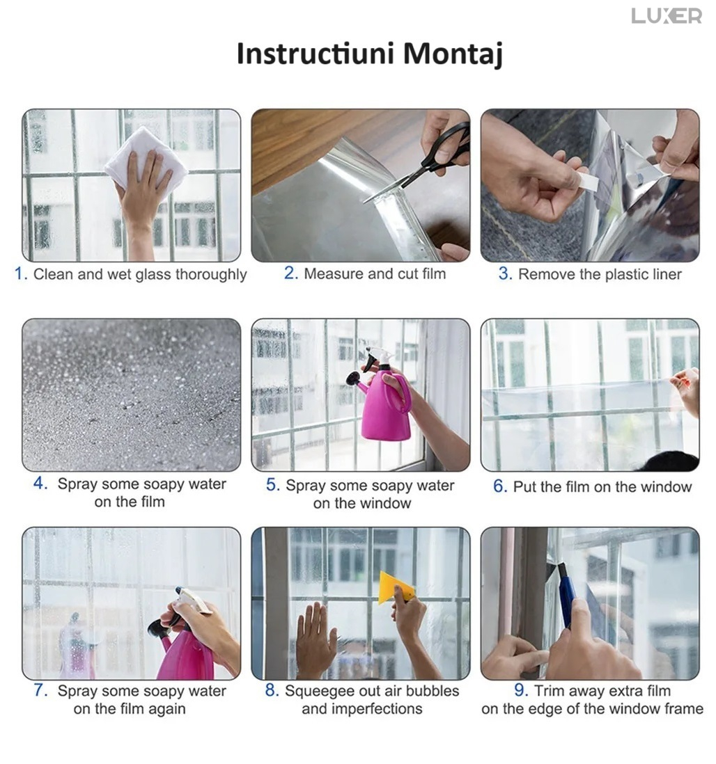 Ușor de instalat și de intreținut: Folia reflexivă este concepută pentru o instalare ușoară și poate fi intreținută cu ușurință. Instrucțiunile detaliate de montare le regasiti mai jos.