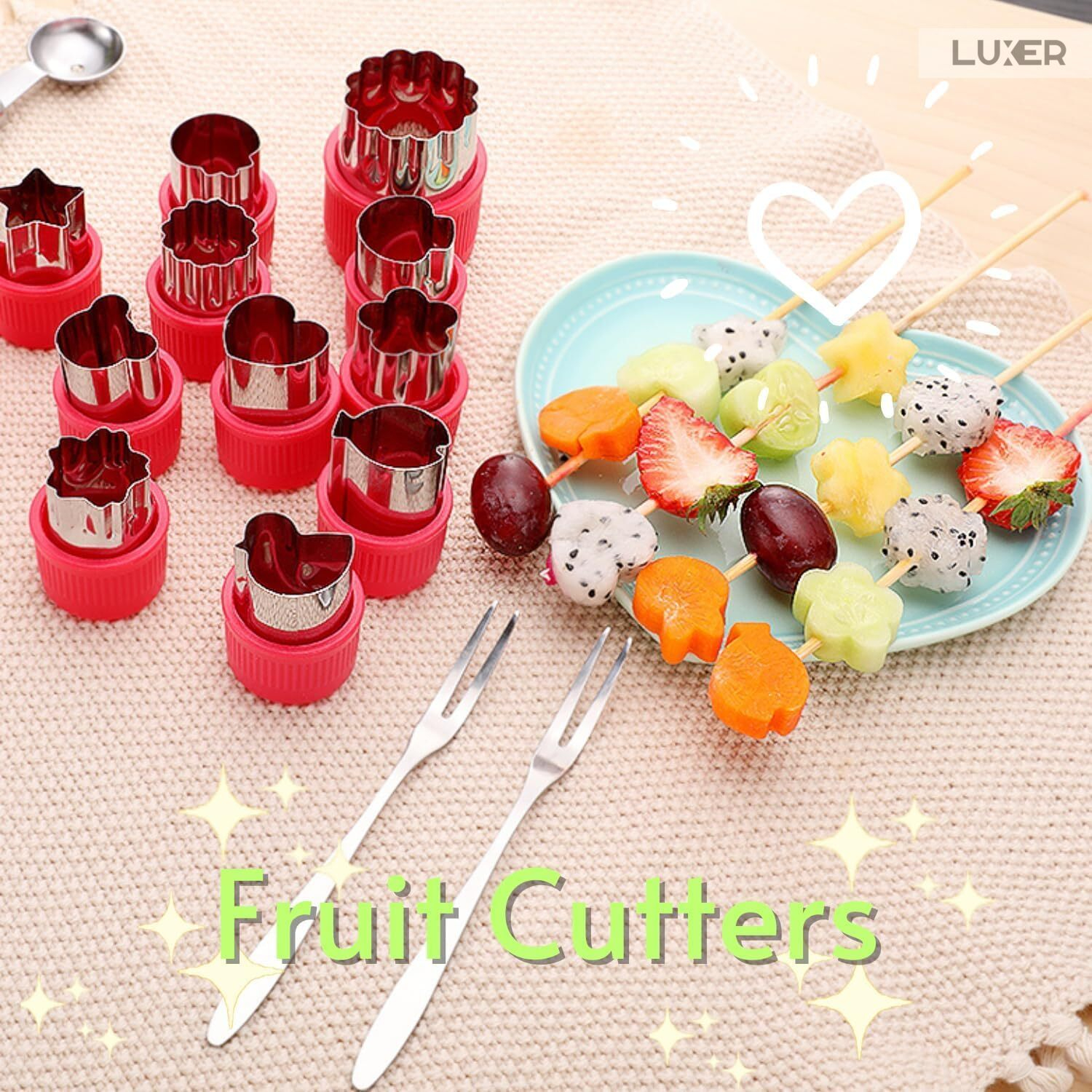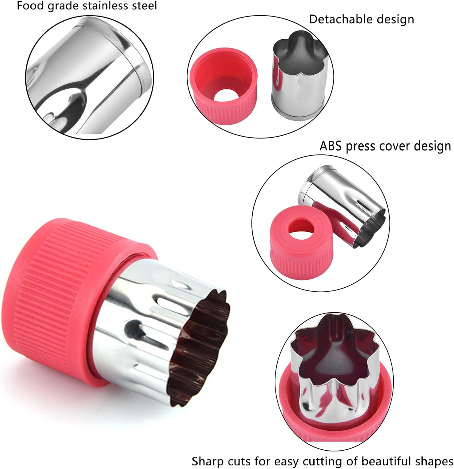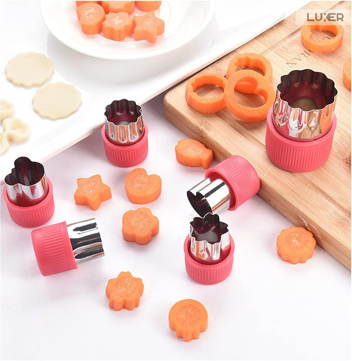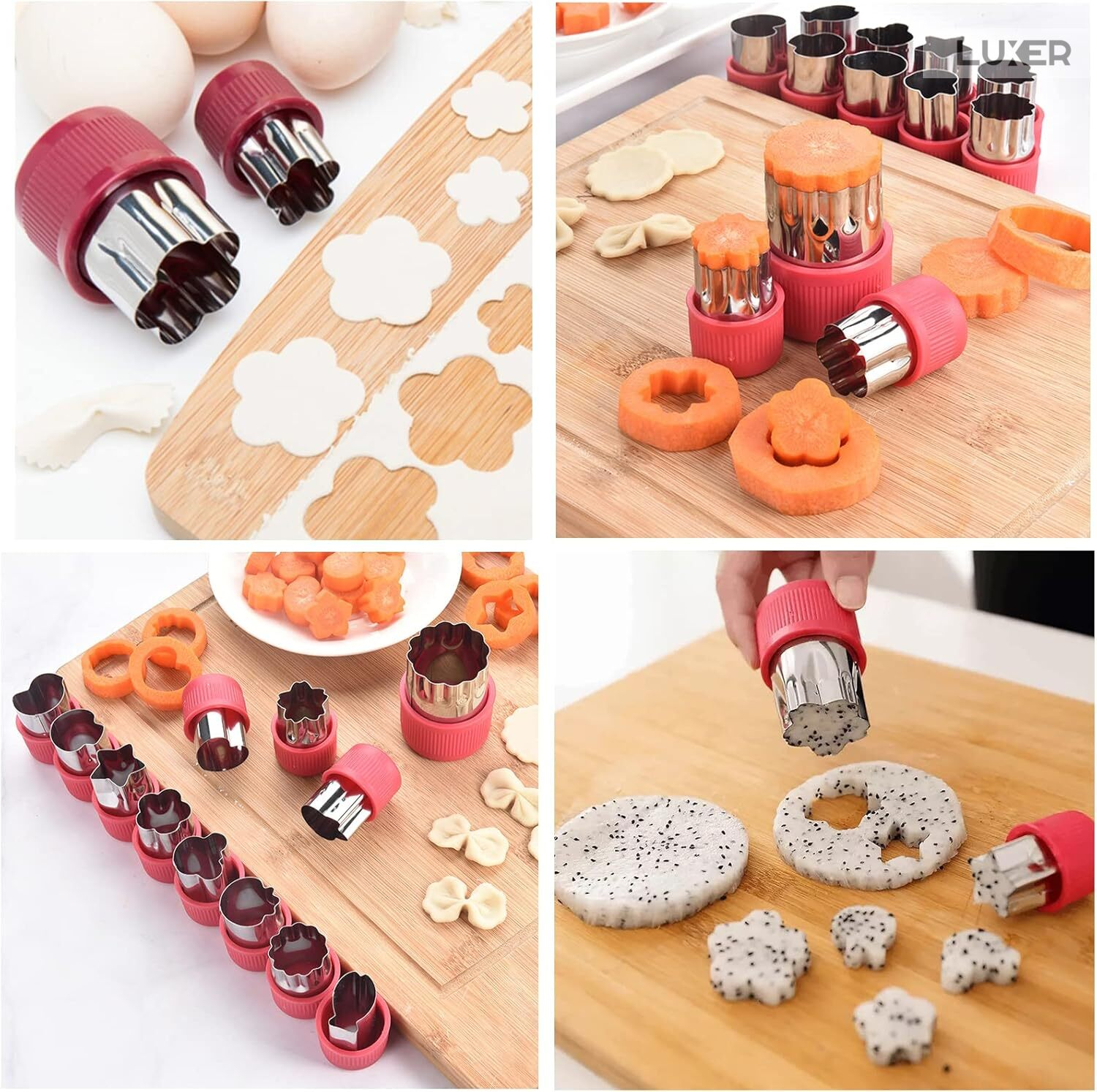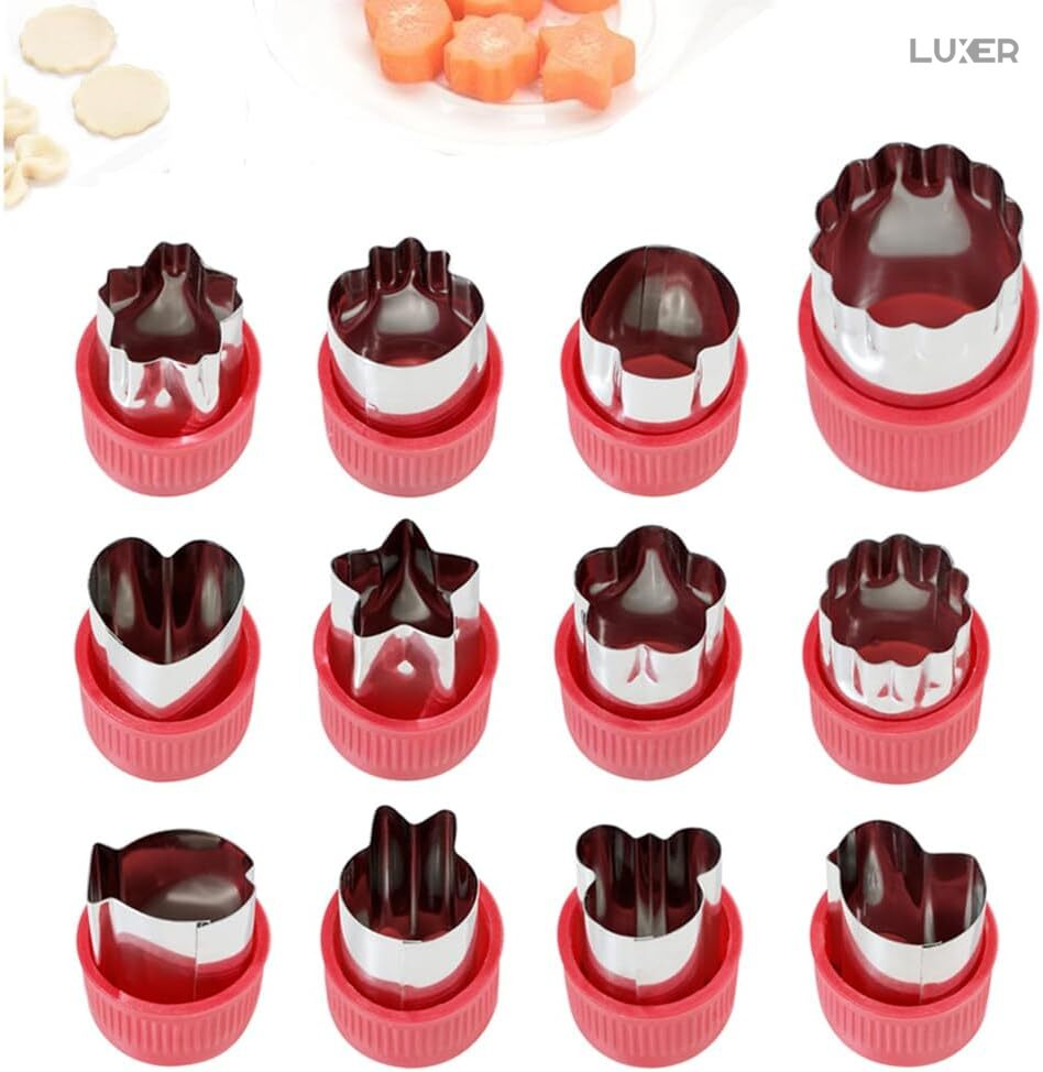 Set 12 Forme Din Otel Inoxidabil Pentru Decupat Aluat, Fructe si Legume, Maner De Protectie Anti-alunecare, Rosu, Luxer