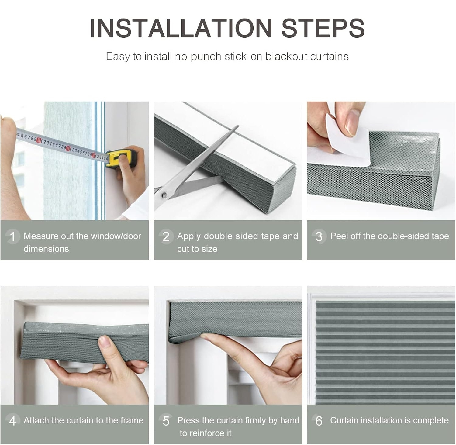 Luxer Set 4 Jaluzele Plisate 90x180 cm, Autoadezive, Reglabile, Montaj Fara Gaurire, Gri